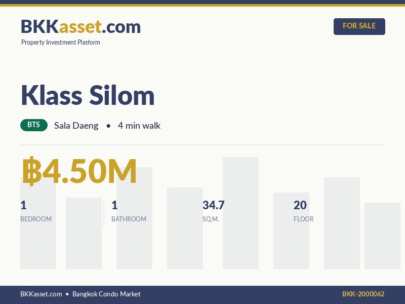 ขาย Klass Silom 1 ห้องนอน 34.7 ตร.ม. ราคา 4.50 ล้านบาท