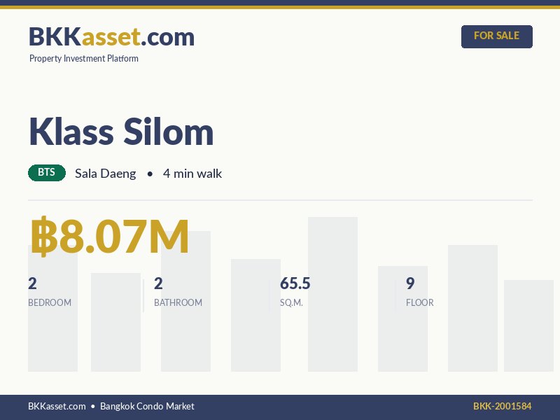ขาย Klass Silom 2 ห้องนอน 65.5 ตร.ม. ราคา 8.07 ล้านบาท