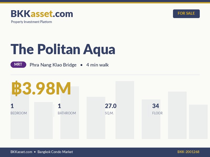ขาย The Politan Aqua 1 ห้องนอน 27.0 ตร.ม. ราคา 3.98 ล้านบาท