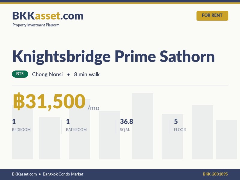 ให้เช่า Knightsbridge Prime Sathorn 1 ห้องนอน 36.8 ตร.ม. ราคา 31,500 บาท/เดือน